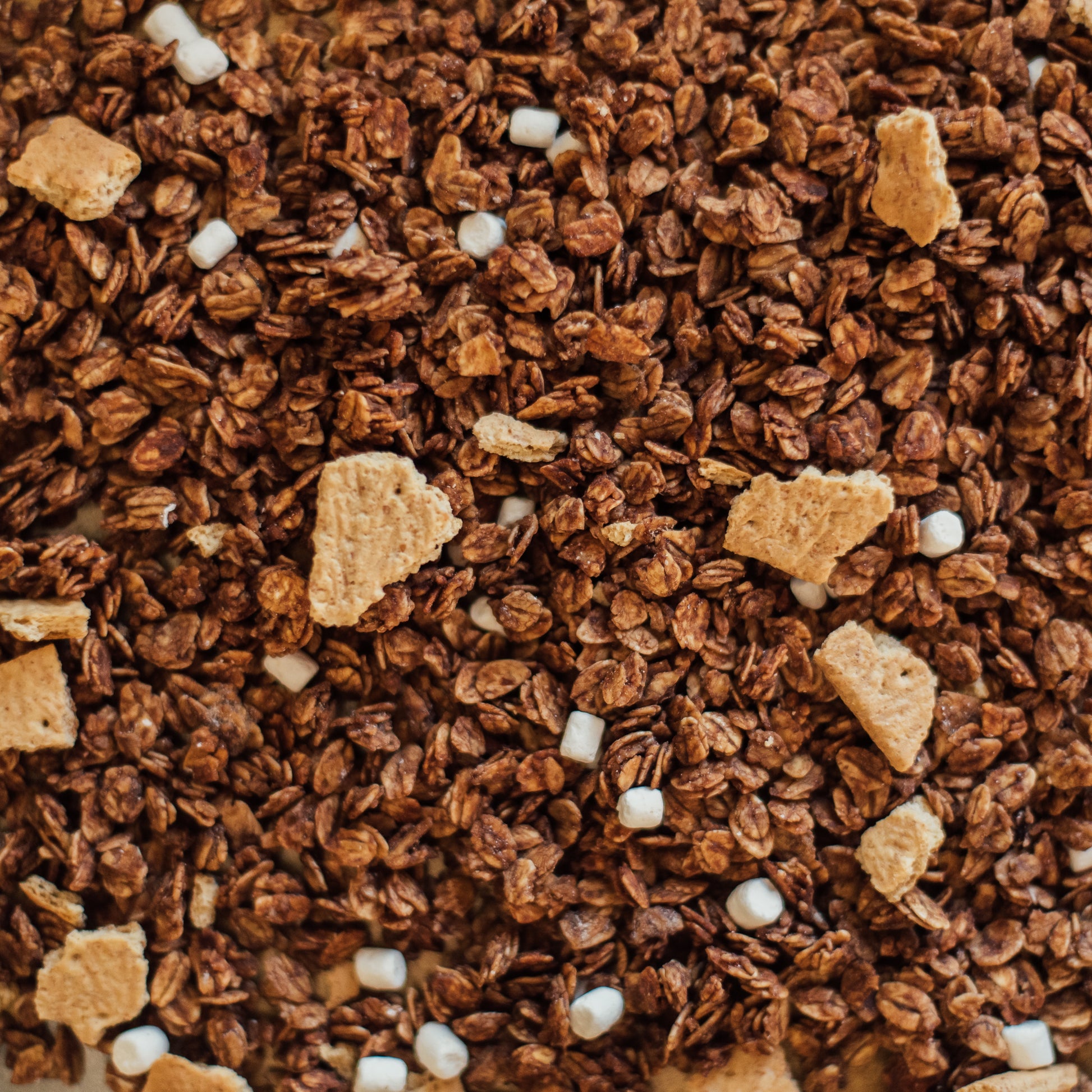 How can you go wrong with all the ingredients of a s'mores added into oats and honey? We coat every oat with semi-sweet chocolate along with the honey and add dehydrated mini-marshmallows and graham crackers after baking.